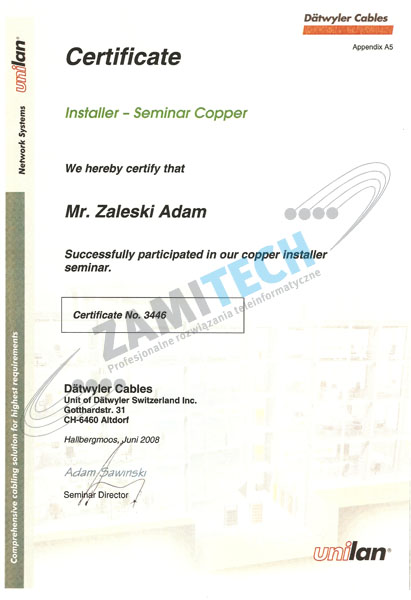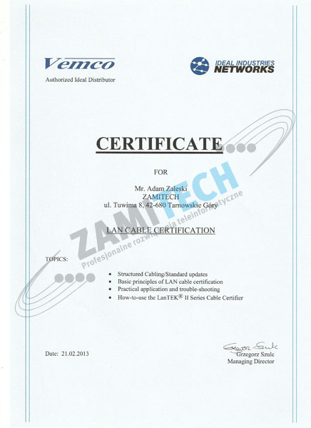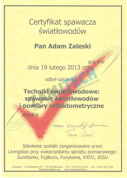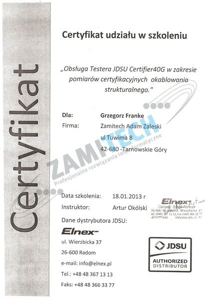 Z dnia na dzień powiększamy grono swoich zadowolonych klientów. Wszystkie usługi świadczone przez firmę ZAMITECH opierają się na nowoczesnej technologii z wykorzystaniem sprzętu światowych liderów w dziedzinie spawania światłowodów, pomiarów i certyfikacji sieci LAN.